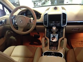 内饰方面:2014款保时捷卡宴铂金版内饰设计的变化非常大,仪表保留了保时捷传统的五组圆形仪表,在整体氛围上凸显出保时捷跑车的运动风格。