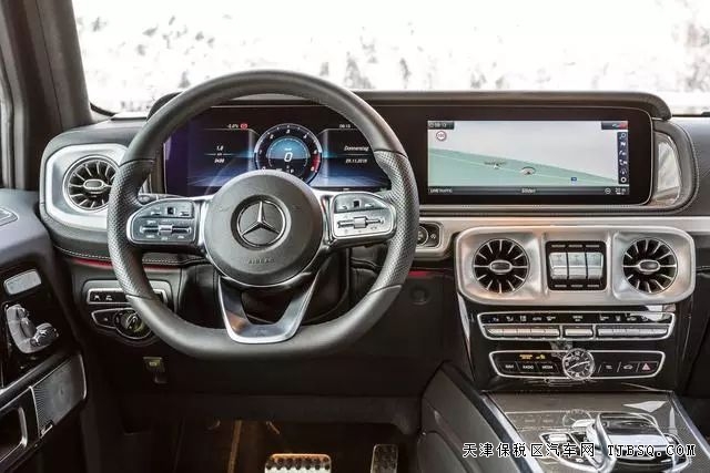 内饰上,G350d同样给力,并没有因为是G级入门车型而过多阉割。9速变速箱、全新家族式双12.3英寸联屏、三辐式多功能方向盘等全新G级标准配置,G350d一样不少。