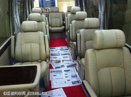 内饰方面:14款丰田考斯特整体布局有所改变 配置小幅提升,新车将内饰的整体布局进行了一下调整,调整后的内饰显得要更为规整,在日常使用时会更方便。