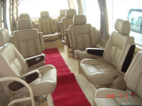 14款丰田考斯特内饰在做工与材料的使用上要比老款车型有所提升,看上去更加的高档。新车不仅提升了内饰的整体质感,还使用了全息影像、全新的集成信息娱乐系统等高科技配置。