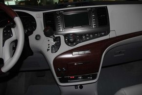 15款丰田塞纳商务车内饰方面:风格明显与埃尔法的中规中矩并不相同,非对称的设计十分跳跃颇具艺术色彩,适时的穿插了桃木纹做为装饰,稳重中不失精致,时尚中凸显细腻。融入了丰田家族的全新设计语言,新塞纳改用柔美的波纹款式。