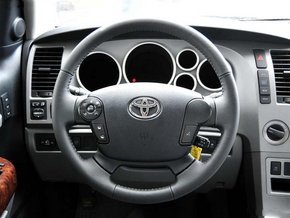 丰田坦途皮卡细节方面:不仅在公路上能独当一面的风光,在停车位上可能也得需要额外的照顾。 内部装饰更接近SUV车型,木质的应用让这辆卡车拥有了几份细腻典雅的感觉。
