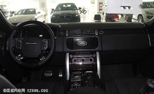 内饰方面:路虎揽胜行政大尺寸彩色宽屏占据了中控台的中央位置,两侧的控制按钮改为触摸式,四周被金属饰板包围,路虎做工的精致程度可见一斑。