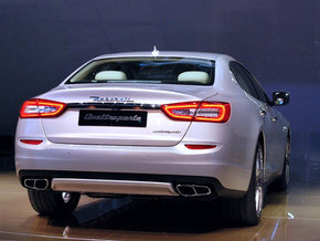 14款玛莎拉蒂总裁外观方面:新车前脸饰有全新格栅,格栅的镀铬凸出式垂直薄片令汽车看起来桀骜不驯。LED前灯和后灯令玛莎拉蒂Quattroporte总裁系列格外引人注目,它个性十足。