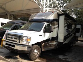 外观方面:新款福特E450房车来自美国房车制造商Jayco房车公司,属于自行式C型房。它的外观整体造型大气浑厚,内饰奢华不已,且车厢可做电动扩展,还配备了遮阳棚,可以遮挡烈日或连绵的阴雨,随心所欲的与大自然亲密接触。