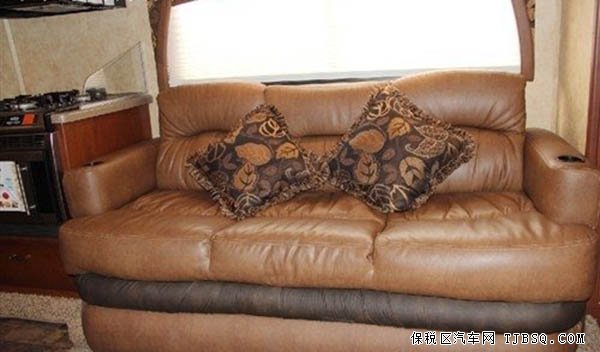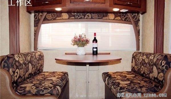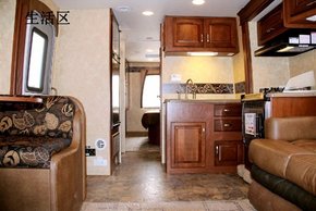 2014款福特E450从侧门进入,就是房车的客厅,客厅前半部有餐桌以及沙发。休息时,可将沙发放下变成一张小床。客厅的后半部分为厨房区域,洗菜池、灶台、冰箱、微波炉、油烟机等常用厨房电器配置一应俱全。顺着冰箱旁边的走道往后,就是卧室。走道的左手是淋浴房,右测是卫生间。