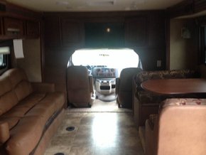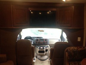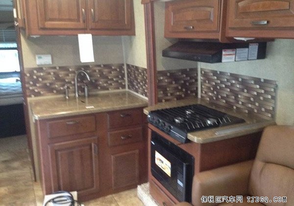 福特E450房车内饰方面:车厢前部靠近牵引部位的门锁打开,可盛放两个燃气罐。长途驾驶的舒适性能,完备的娱乐设施,这些造就了一个流动的豪华宾馆。