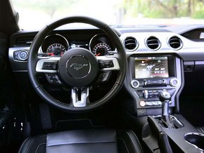内饰方面:2015款福特野马2.3T不再使用廉价质次的硬塑料,所有塑料件均有柔软的质感,仪表台上原先的金属喷涂塑料。