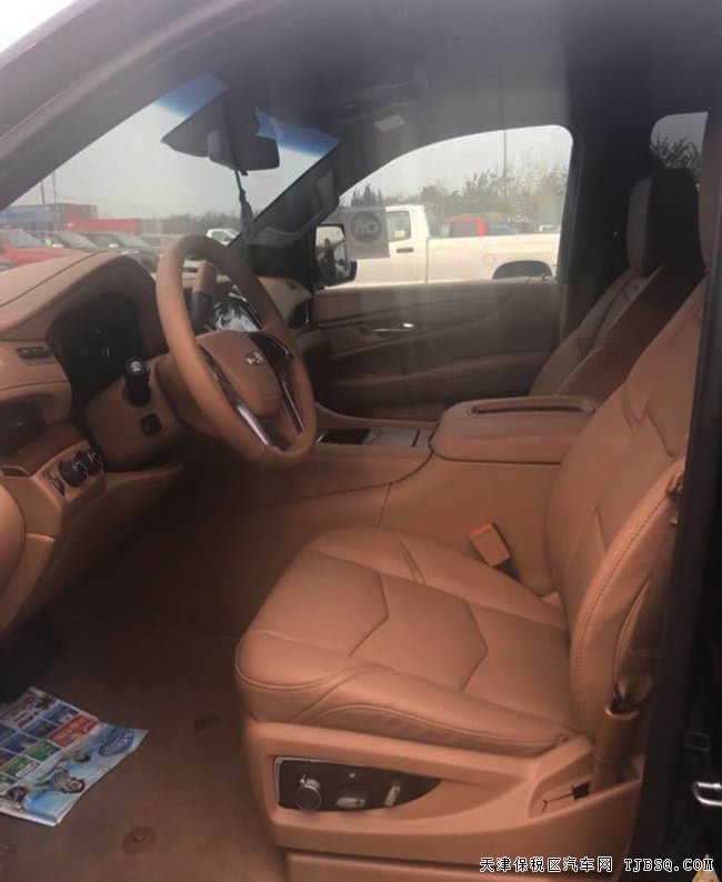 | 配置信息 | .6.2L V8 发动机、8速变速箱、4轮驱动、自动调节悬挂系统、电子转向系统、拖车系统、16声道bose环绕立体声、主动噪音消除、收音机、CD、MP3、高清卫星收音机、卡迪拉克CUE系统及8寸导航屏幕、蓝牙系统、12英寸可构建显示及驾驶员信息中心、抬头显示、雷达测距、皮质方向盘、加热方向盘、方向盘带控制中心、固定踏板、按键启动、遥控启动、无钥匙方便进入、12方向皮座椅、加热、通风前座椅、第二排座椅加热、电动可翻倒、第三排座椅电动60/40折叠、四门电动窗、前排可一键上下、110伏特电压输出、三区舒适控制、电动可折叠带加热及转向灯的反光镜、雨量感应雨刷、自动远光前灯、前后停车辅助、电动掀起和划动天窗、22寸铝合金轮毂、无需油箱盖、电动可调整开启角度尾门、双级开启气囊、前、侧、头胸部气囊、自动稳定带循迹系统、胎压监控、环影系统、防盗系统、盲点警示、后车流警示、驾驶员警示包 | ||
